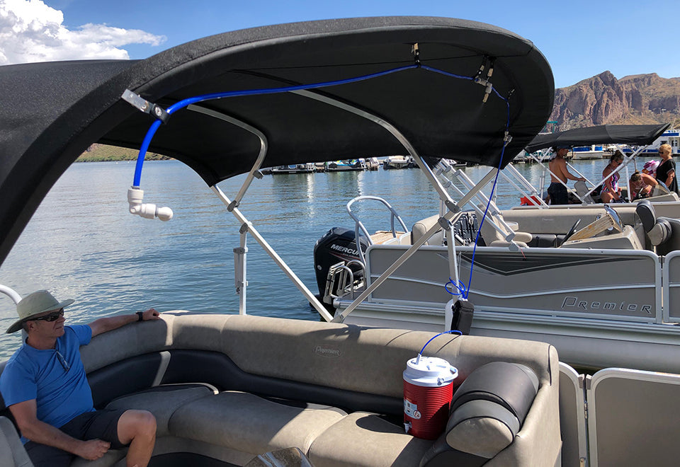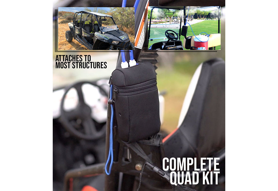 Beat summer heat with the Portable Misting System. This cordless device makes a sweltering hot day more comfortable with a continuous cloud of refreshing mist that cools the air up to 30°F. It’s perfect for the golf cart, boat, patio, beach, campsite, sports sideline or any outdoor location. Simply attach the 16-ft. misting line (with 4 misting nozzles) using the included clips, and place the intake hose into any clean water source. Features an 8-speed pump with wireless remote to customize your cooling.